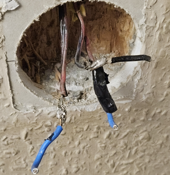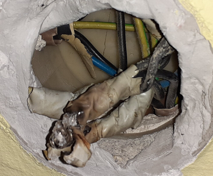Összetekert és megégett alumíniumvezetékek leszigetelve.