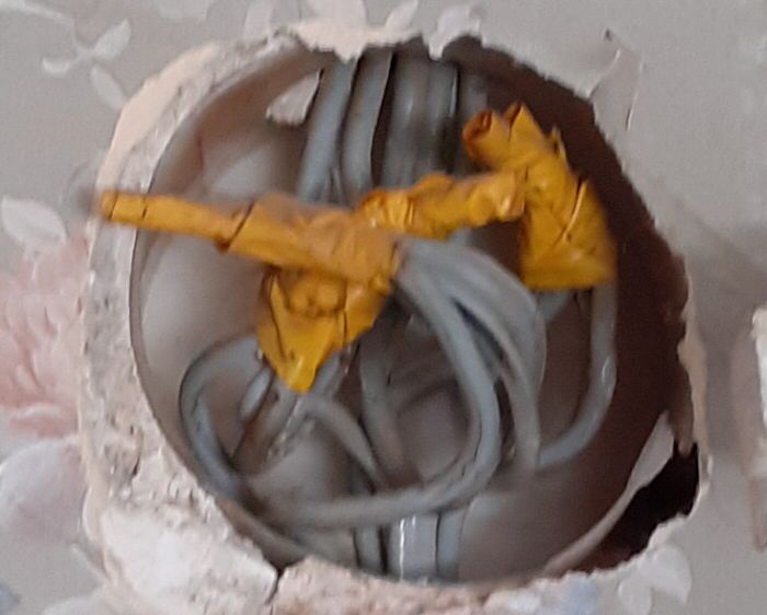 Forrasztott kötés a Jereván lakótelepen a világításkapcsoló mögött,