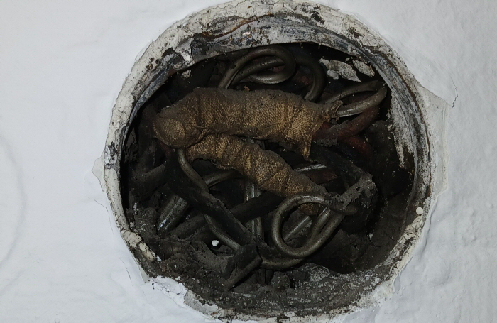 Az 1940-es években létesített sodrott alumínium kötés kissé megégve, 2024-ben fotózva.